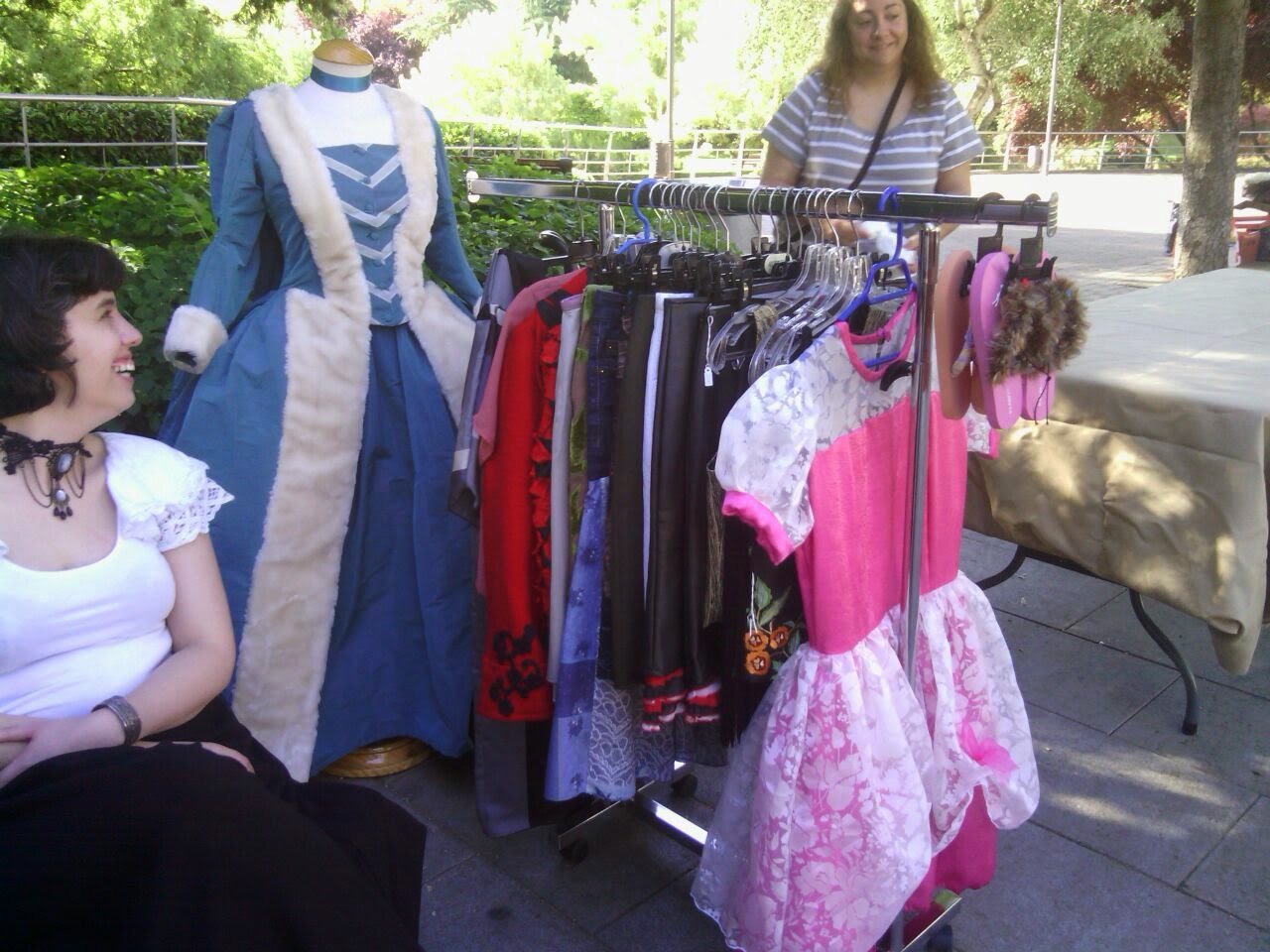 El día 10 de mayo se celebrará en Coslada la VII Feria de Artesanía y Reciclaje en el Lago de Valleaguado, y nosotros estaremos allí con un pequeño stand. Llevaremos algunas prendas que hemos confeccionado (entre ellas el vestido del siglo XVIII, por si alguien quiere verlo en persona) y un montón de chanclas decoradas.
